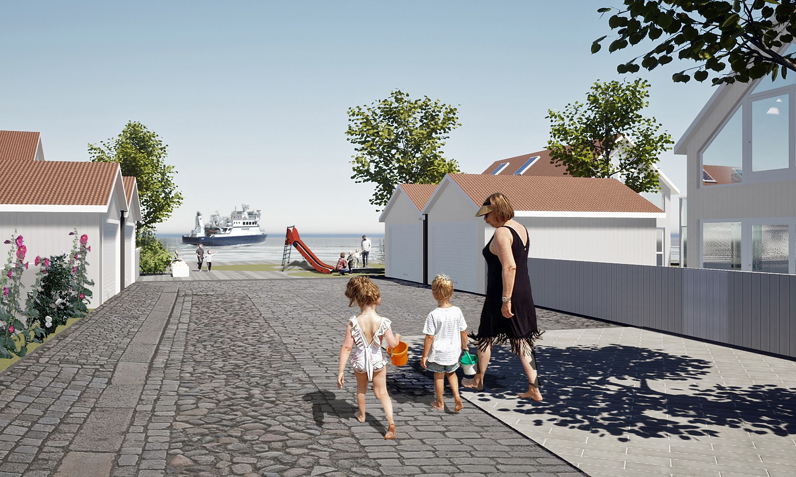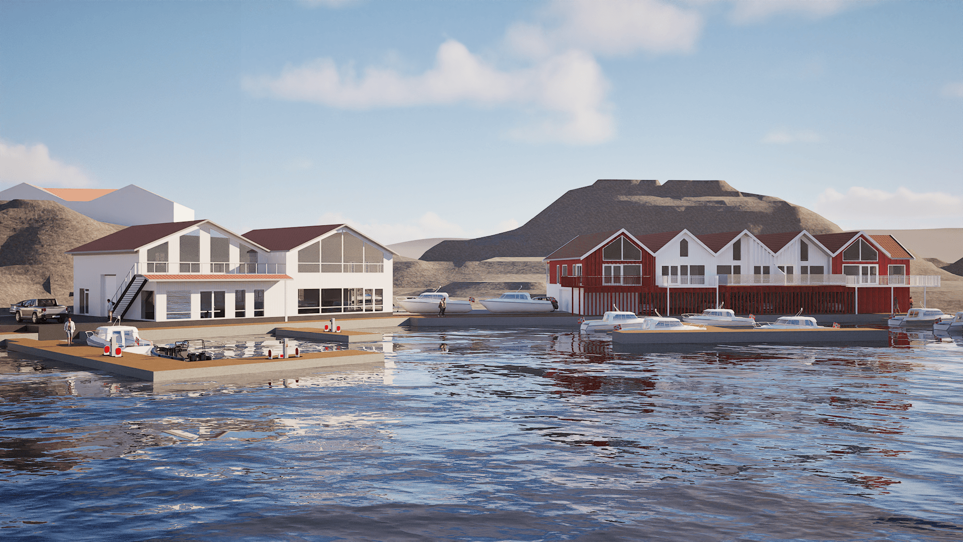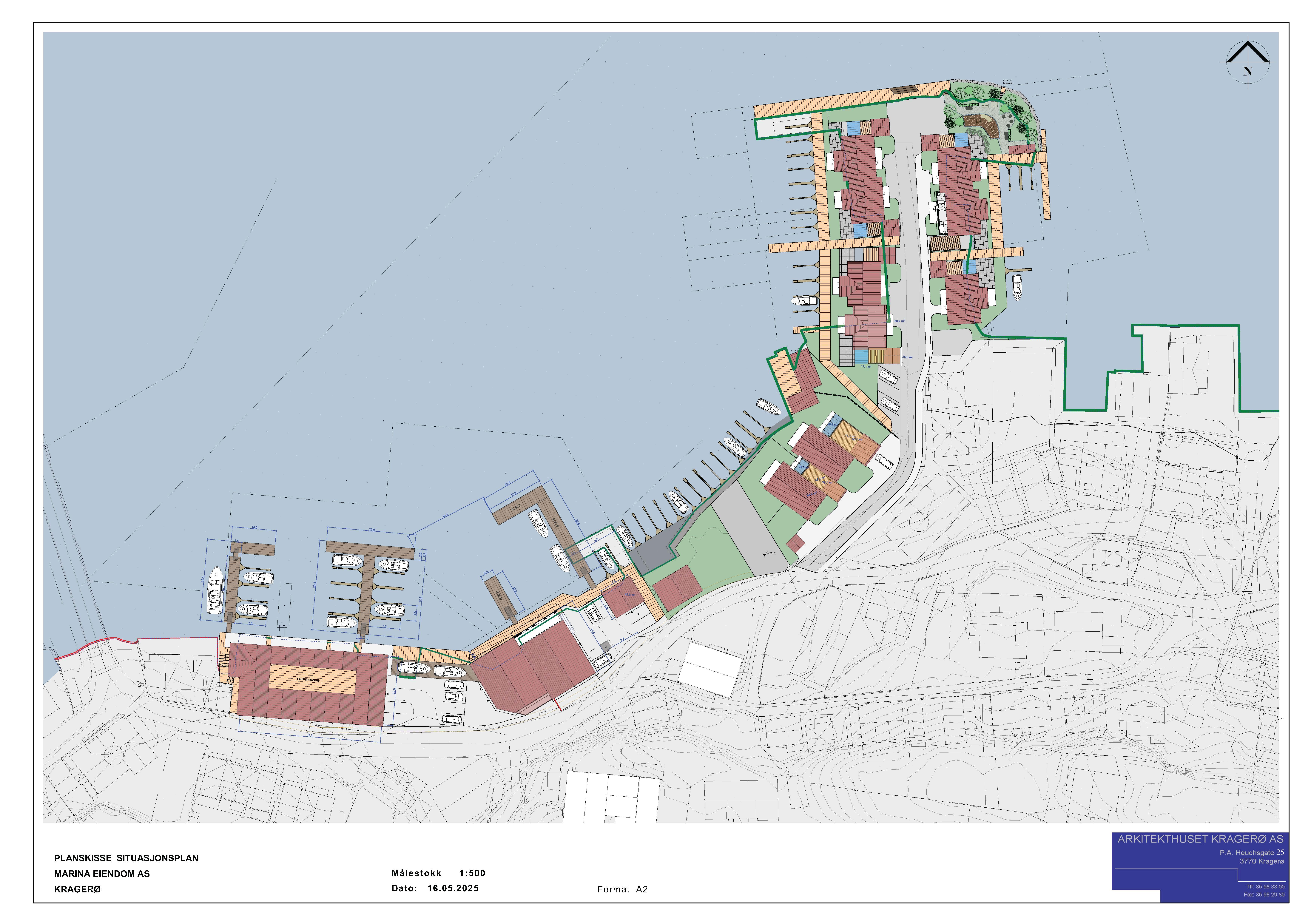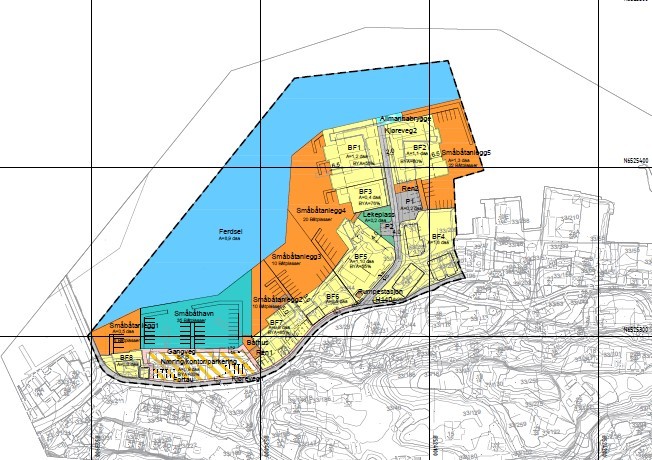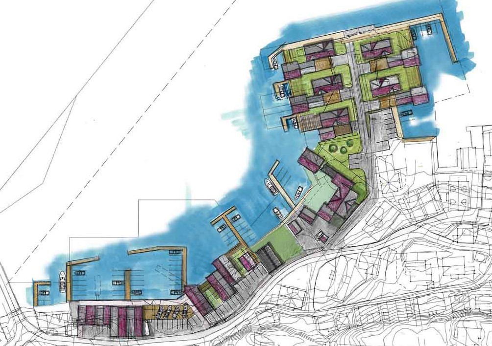 Forslag til detaljreguleringsplan for hele strekningen fra Øybrua til Skjæret. Innenfor planområdet skal det planlegges for næringsvirksomhet, båtplasser, parkering og boligbebyggelse. Allmennheten vil ha tilgang til hele området via strandpromenade, fortau og fellesområder i form av lekeplass og brygger. Boligene planlegges som frittliggende eneboliger i rekke, med tilhørende garasje og båthus.